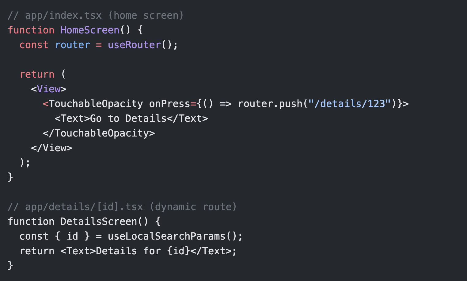 useRouter()anduseLocalSearchParams(), whereas Compose’sNavControllerand SwiftUI’s navigation state are more tightly integrated into the framework.